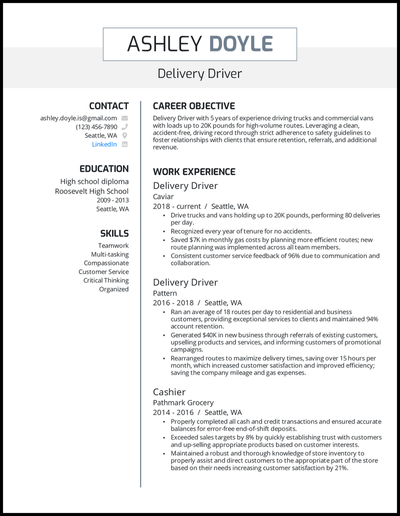 Amazon Delivery Driver Resume Example Gemini Logistics Austin Texas